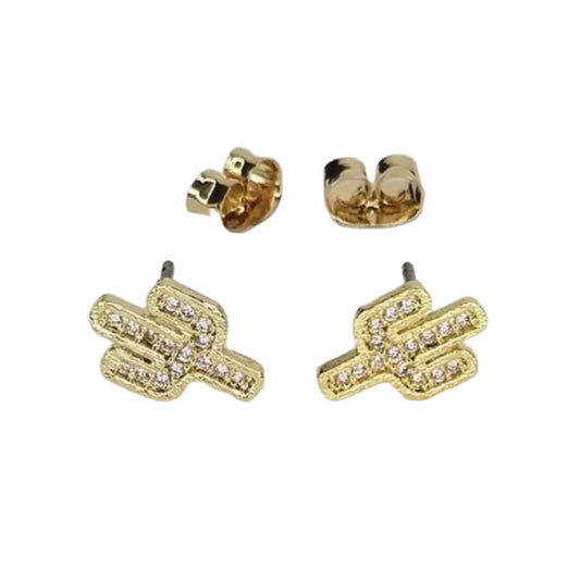 Gold Rhinestone Cactus Stud Earring