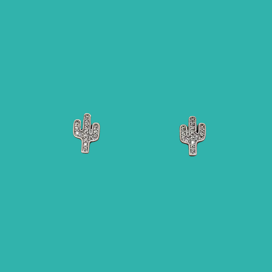 Silver Rhinestone Cactus Stud Earring